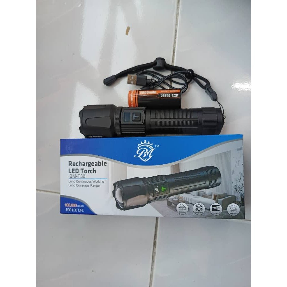 BM-T30 Super Bright Flashlight Waterproof Usb Rechargeable Torchlight Zoomable Long Range Flashlights Lcd Display light. Experience brilliant illumination with the T30 Flashlight, engineered for performance, durability, and versatility. Whether you’re exploring the outdoors or facing a power outage, the T20 is your reliable lighting companion. Light up the darkest environments with a powerful, high-intensity beam  perfect for nighttime adventures or emergency use.