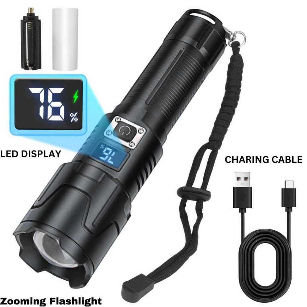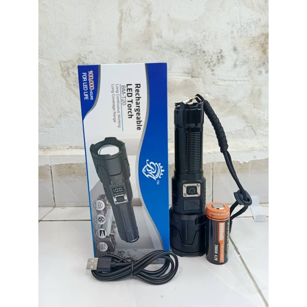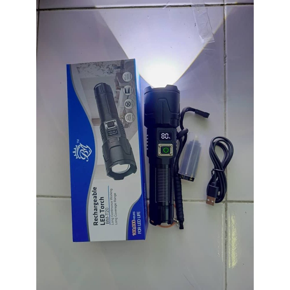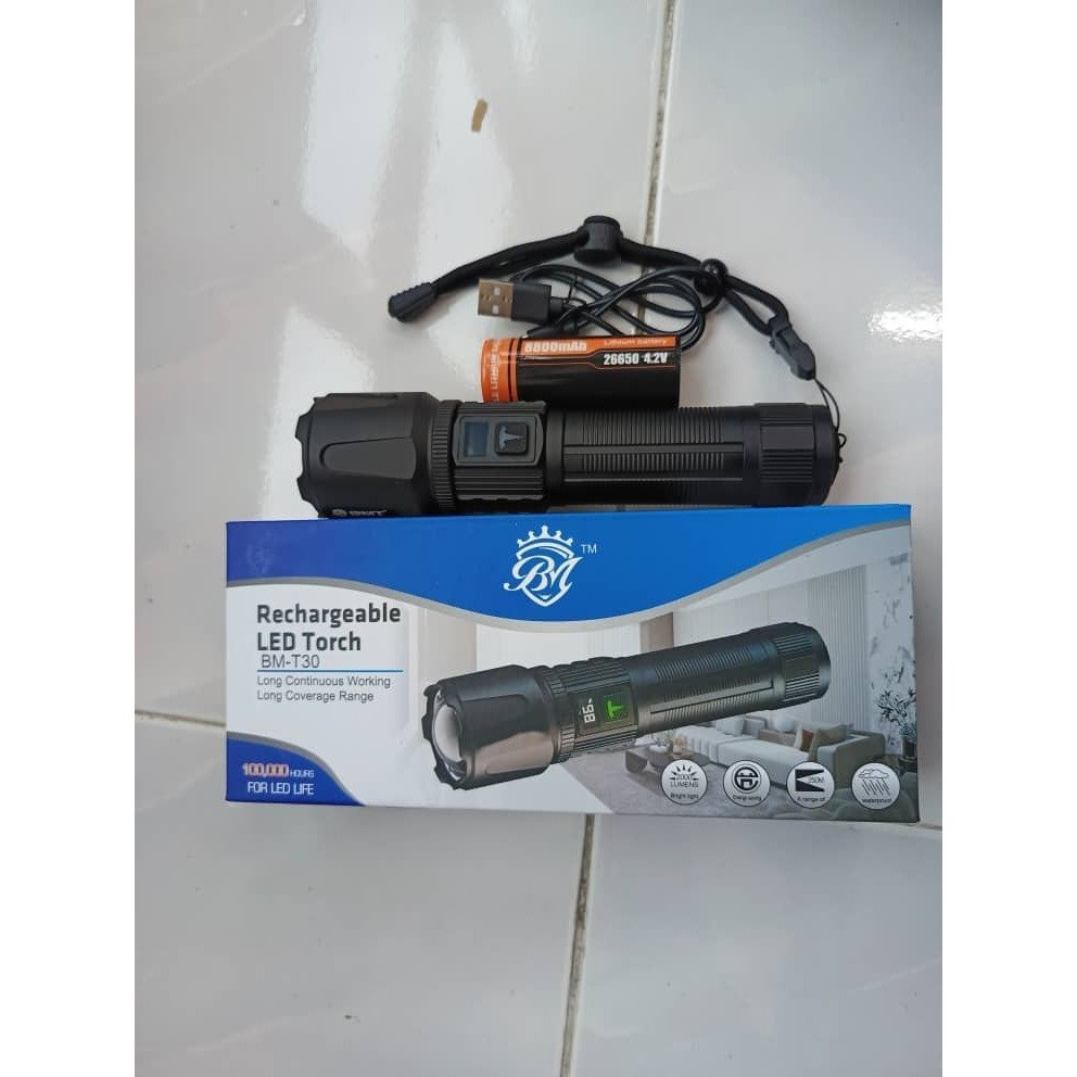 BM-T30 Super Bright Flashlight Waterproof Usb Rechargeable Torchlight Zoomable Long Range Flashlights Lcd Display light.