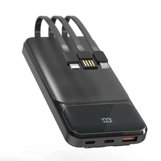 BM-T100 Powerbank 30000mAh with Super Fast Charging Key Features 30000mAh High Capacity:Ideal for charging smartphones, tablets, and gadgets multiple times on a single charge. 22.5W Super Fast Charging:Equipped with quick charge support for efficient and rapid charging of your devices. LED Display Screen:Provides real-time information on battery percentage, charging status, and power remaining. Versatile Compatibility:Features Type-C, USB, and Apple interfaces, supporting a wide range of devices simultaneously. Advanced Safety Features:Protects against over-charging, over-discharging, and short circuits, ensuring your devices are safe. Sleek and Durable Design:Made with premium ABS material for long-lasting performance and portability. Specifications Model Name: BM-T100 Battery Type: Li-Polymer Battery Battery Capacity: 30000mAh Input Interface: USB, Type-C Output Interface: Type-C, USB-A, Apple Interface Output Power: 22.5W Material: ABS Plastic Weight: Approx. 0.6kg Protection Features: Over-Charging, Over-Discharging, Short Circuit Protection Color Options: Classic Black, Elegant White Socket Standards: Universal Compatibility (USA/Canada, EU, UK, Australia/New Zealand, etc.) Applications The BM-T100 Powerbank is perfect for: Daily commuting Traveling Outdoor adventures Emergency power needs Package Includes BM-T100 Powerbank USB Charging Cable